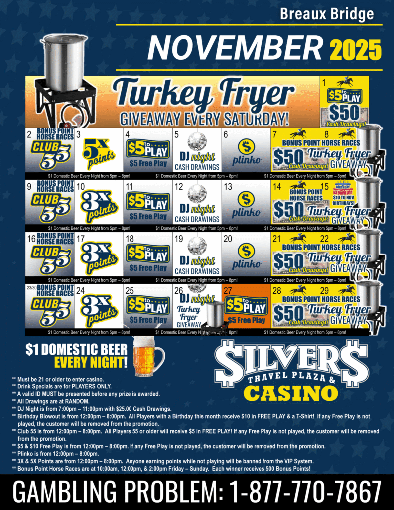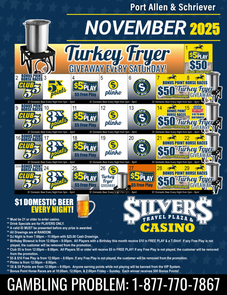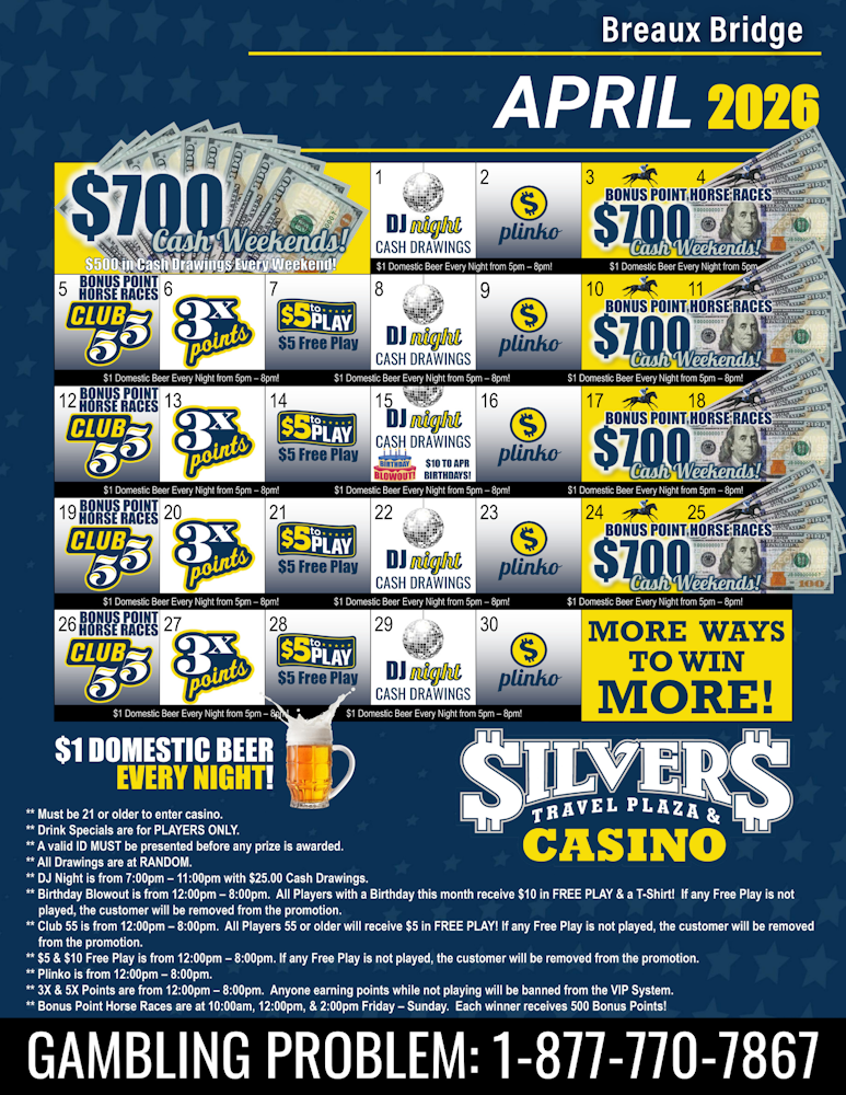 Silvers Travel Plaza & Casino has five locations throughout South Louisiana that are a traveler’s dream.